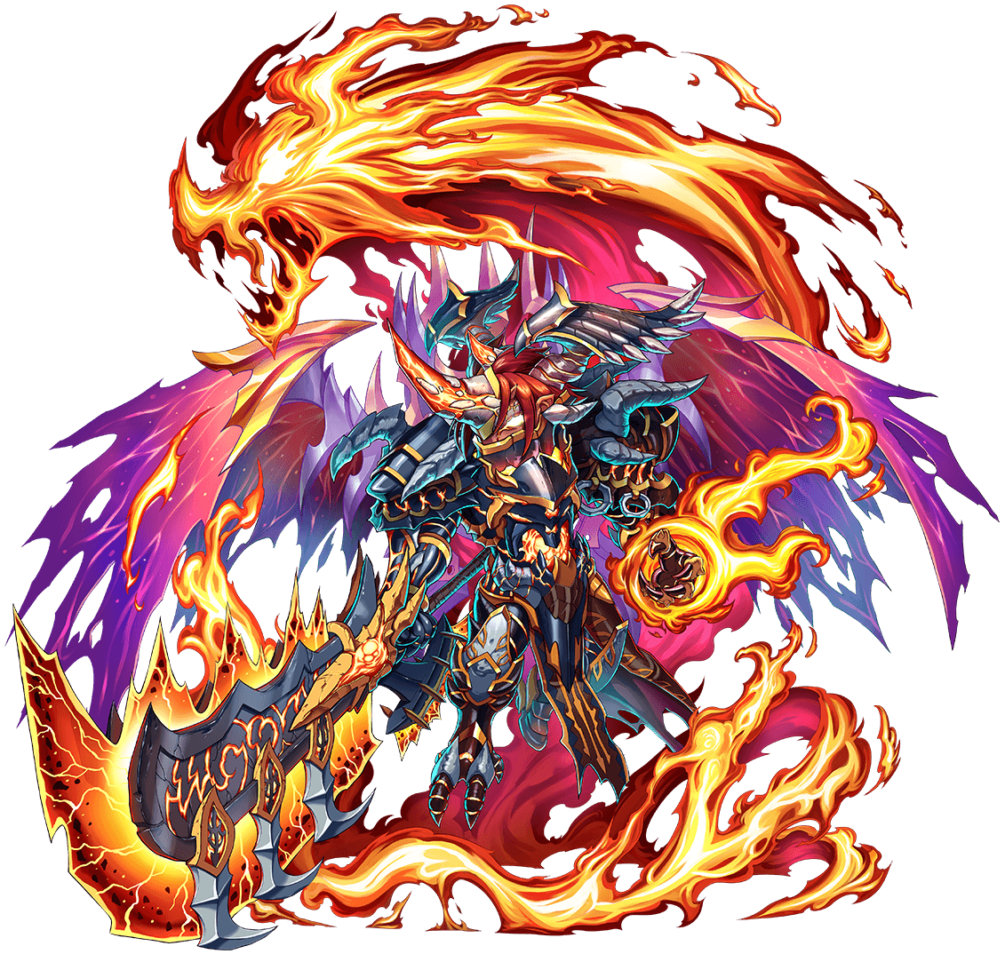 10 combo powerful Fire attack on all foes, hugely boosts own Atk, Def, Rec, critical hit rate for 3 turns, hugely boosts Atk, Def relative to HP for 3 turns & greatly boosts max HP