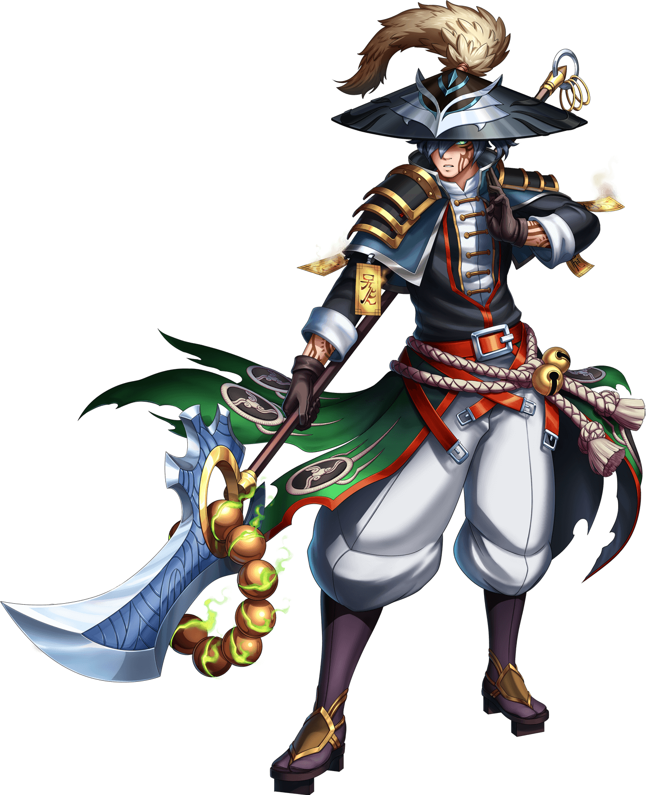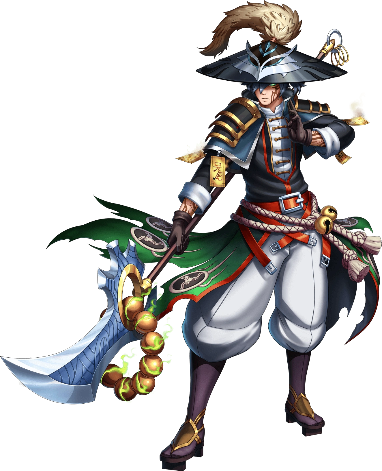 As an NPC character, Hakuzo first appears briefly in Raid Class 7: Dichroma Chaos but plays a bigger role in Grand Quest - The Echoing Void.