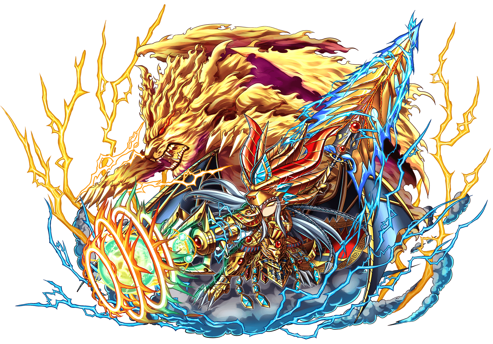 | During the second invasion upon Athensphere, Gazia unleashed another horde of mechanical beasts that dwarfed the first. Zedus knew that the city was lost and that his people did not stand a chance against Gazia and his mechanical army. But Zedus had not given up. He ordered the City of Athensphere to be abandoned and it’s people evacuated. Tridon was to carry the citzens to safety aboard his ships. Ultor, Hadaron and Aurelia remained behind to hold off Gazia’s horde while the people fled. Zedus knew that he didn’t have enough time to evacuate an entire city. He had to buy them more time no matter the cost. Climbing to the highest point of the imperial palace, Zedus poured his life force into one final attack, summoning a lightning storm that engulfed the entire city. Lightning bolts fell relentlessly upon Athesphere, each taking the form of a raging Thunder beast that hunted it’s enemy with terrifying speed. When the storm subsided, the only sounds to be heard came from the distant habour packed with frightened people desperate to flee the city. With a final breathe, Zedus bade his people one last farewell. Little did he know of a far greater disaster that was about to befall Athensphere. | |