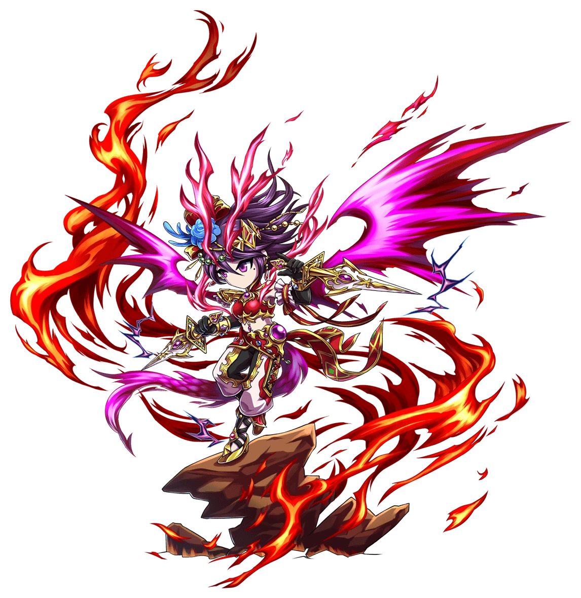 21 combo powerful Fire attack on all foes, considerably boosts BC, HC, Item drop rates for 3 turns, hugely boosts BC efficacy for 3 turns & damage taken considerably boosts BB gauge for 3 turns