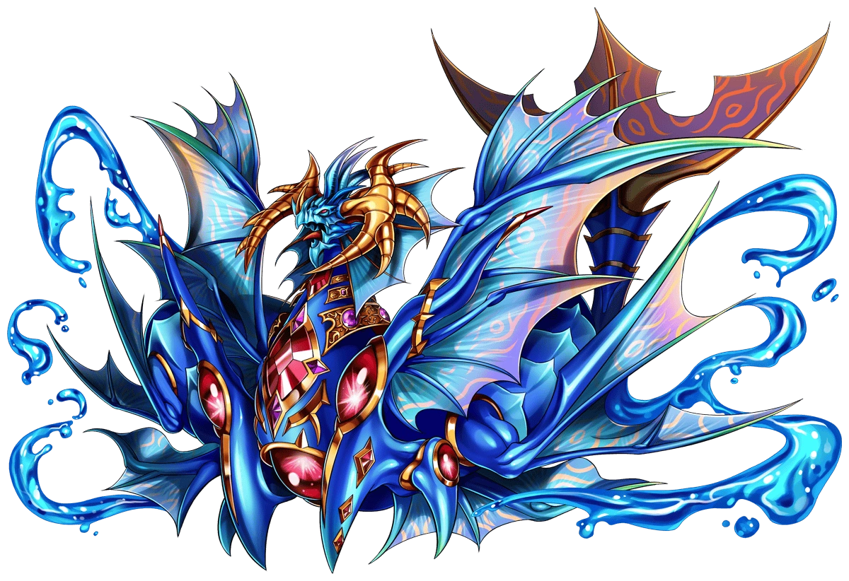 | A type of sea dragon native to Ishgria known for its beautiful fins. Since it has never been seen preying upon other animals, it is believed that it restores its energy through the various minerals it keeps stored in its body. Known to enjoy swimming leisurely in the light, it can also cause great maelstroms and whirling tides in the sea when seriously infuriated. Though it is originally a creature from the sea, some have been known to come ashore secluded places to bathe in the light of the full moon. | |